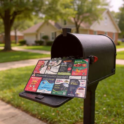 Riverside Spotlight places your business on a shared 9” × 12” postcard delivered by USPS to thousands of homes in Riverside. Simple, affordable, and built for local businesses.